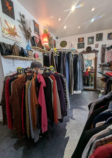 Découvrez notre friperie cosy, où vêtements d'occasion et objets d'art se rencontrent dans la convivialité.
